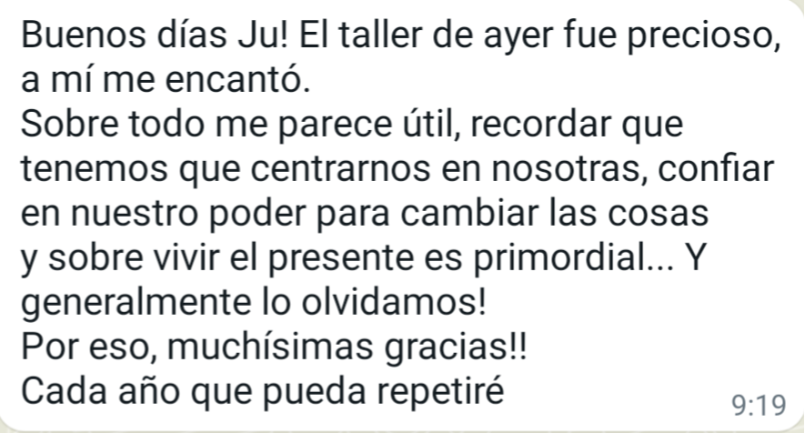 Sales del taller con una sensación clara de dirección, calma interna y criterio propio para decidir cómo quieres avanzar.